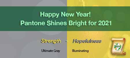 Welcome to the Dove Direct Print and Marketing Blog. Today's post, "Happy New Year! Pantone Shines Bright for 2021," takes a moment to wish all a Happy New Year and highlights Pantone's 2021 Color of the Year choices. Life worldwide has taken a multitude of hits from the pandemic and the resulting global economic malady. As we move into 2021, we would like to give a special thanks to all medical professionals, first responders, law enforcement personnel, essential workers, and all who have sacrificed their time, energy, and resources to help those in need during this tragic experience. We would also like to thank our staff, partners, and stakeholders for their continued support while maintaining and growing their enterprises throughout this challenging time. Further, we send our good wishes and prayers to all who have lost loved ones and are still battling the after-effects of COVID-19. As we look to 2021, there's a bit of brightness on the horizon with Pantone's 2021 Colors of the Year, PANTONE 17-5104 Ultimate Gray + PANTONE 13-0647 Illuminating.